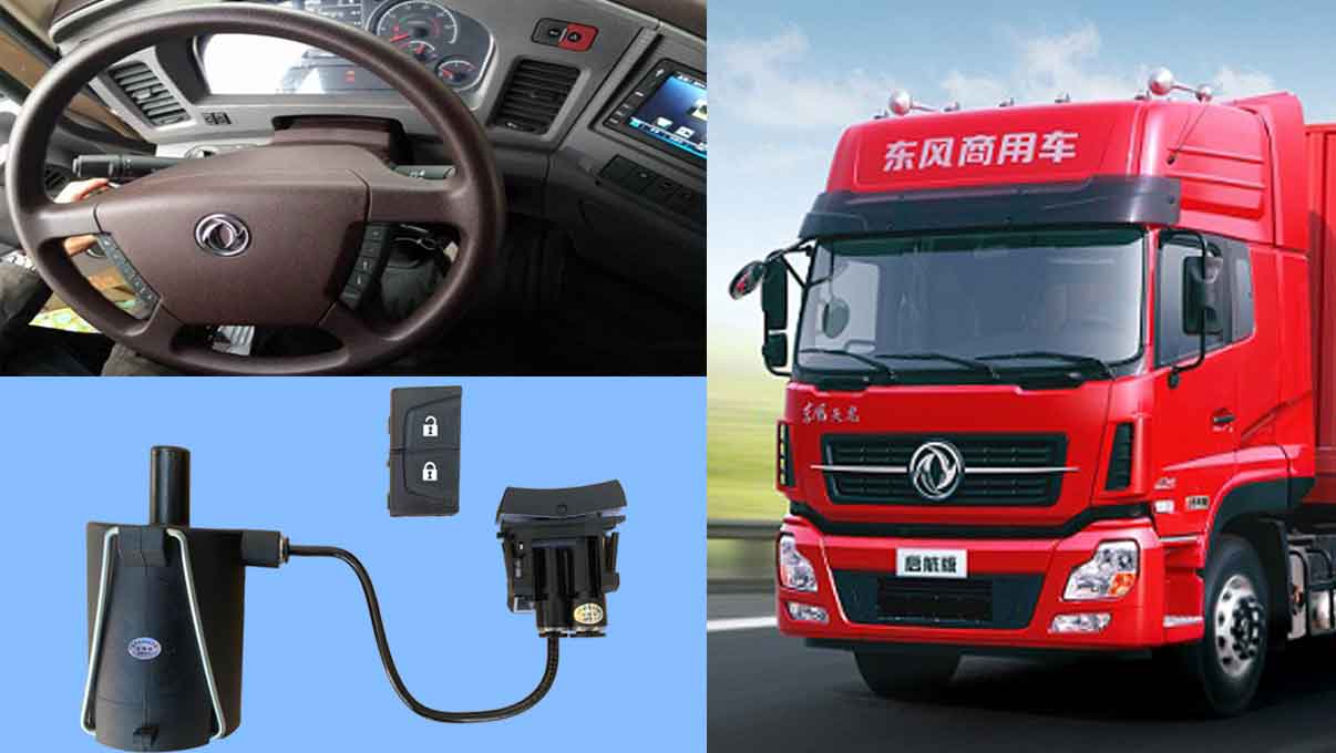 功能简述:装置主要用于东风D760车型,属于气动可调方向盘总成核心件,用于锁止、开启方向盘调节系统及延时关闭方向盘调节系统。